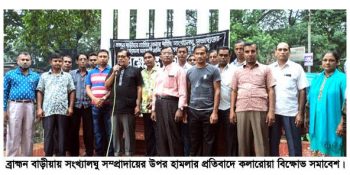 জুলফিকার আলী,কলারোয়া (সাতক্ষীরা) প্রতিনিধিঃ ব্রাহ্মণবাড়িয়ার নাসিরনগর ও হবিগঞ্জের মাধবপুরে সাম্প্রদায়িক সহিংসতার প্রতিবাদে কলারোয়ায় প্রতিবাদ সমাবেশ অনুষ্ঠিত হয়েছে। শুক্রবার বিকালে স্মৃতি সৌধের সামনে এ মানববন্ধন কর্মসূচীর আযোজন করে বাংলাদেশ হিন্দু বৌদ্ধবিস্তারিত