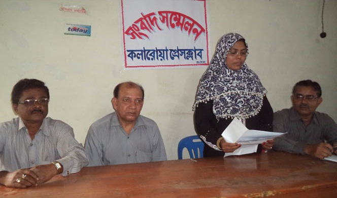 আদালতে মিথ্যা মামলা করার প্রতিবাদে কলারোয়ায় স্কুল শিক্ষিকার সংবাদ সম্মেলন