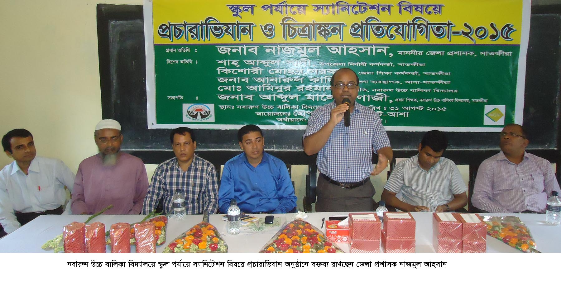 সাতক্ষীরা জেলা প্রশাসক নাজমুল আহসান বলেন, ‘স্কুল পর্যায়ে স্যানিটেশন-ব্যবস্থা উন্নত হলে শিশুদের স্বাস্থ্য উন্নয়ন হবে। শিশুরা বিভিন্ন রোগের হাত থেকে রক্ষা পাবে। এটা পারিবারিক ও জাতীয় উন্নয়নে ভূমিকা রাখবে। এসময়বিস্তারিত