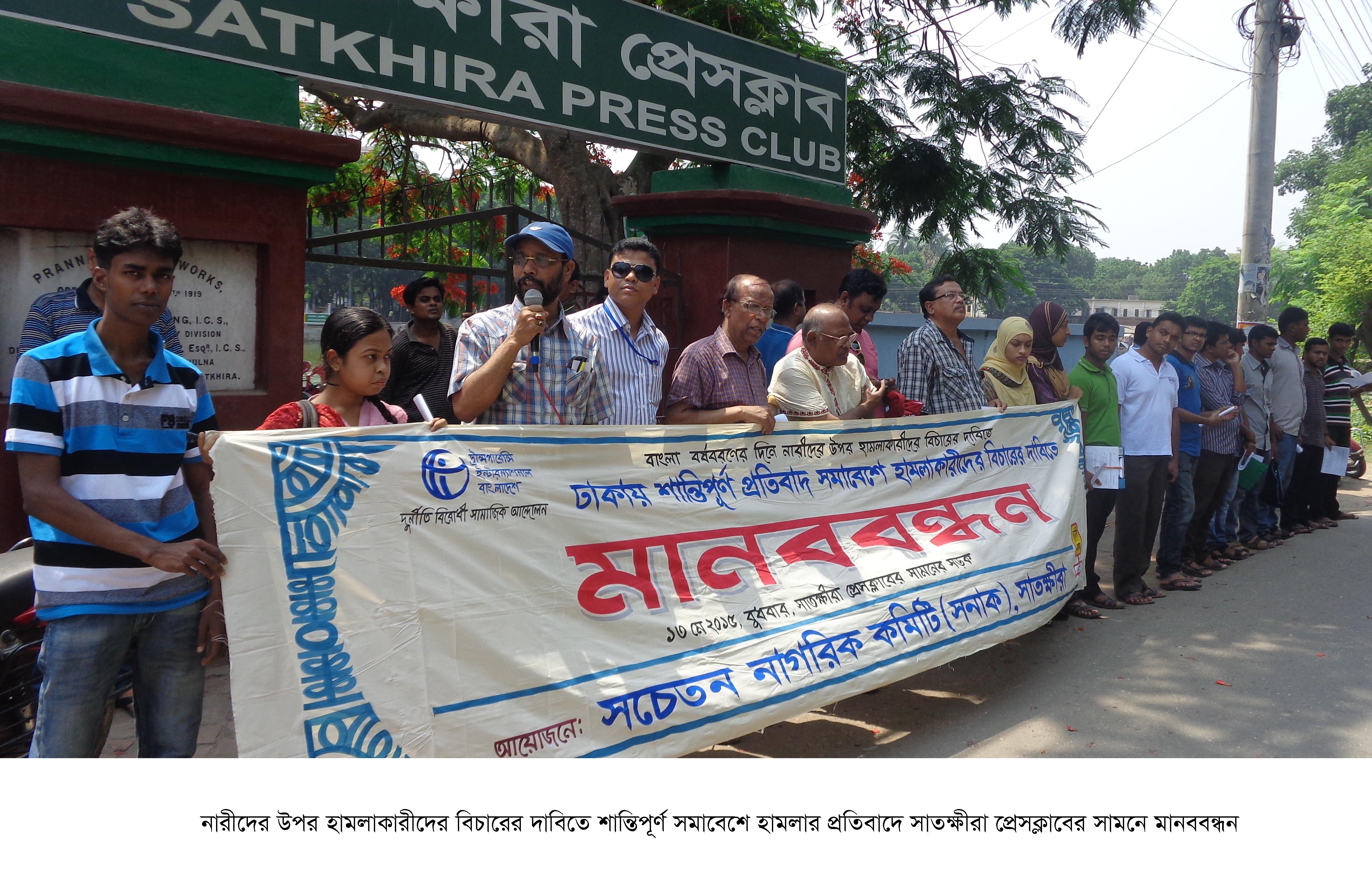শান্তিপূর্ণ সমাবেশে হামলার প্রতিবাদে সাতক্ষীরায় মানববন্ধন