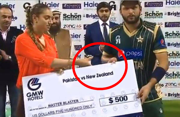 ইন্টারন্যাশনাল স্টেডিয়ামে নিউজিল্যান্ডের বিপক্ষে পাঁচ ম্যাচের ওয়ানডে সিরিজ সবেমাত্র শেষ হয়েছে। মাঠে চলছে পুরস্কার বিতরনী অনুষ্ঠান। পাকিস্তান দলের অধিনায়ক আফ্রিদিকে ডাকা হলো পুরস্কার গ্রহনের জন্য। মাস্টার ব্লাস্টারের পুরস্কারের চেক হাতে