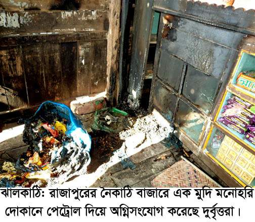 ঝালকাঠির রাজাপুরে এক মুদী দোকানে পেট্রোল দিয়ে অগ্নিসংযোগ করেছে দূর্বৃত্তরা